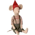 Der Medium Maileg Weihnachtsmaus Junge ist eine entzückende kleine Maus, gekleidet in ihrem schönsten Weihnachtsoutfit. Auf dem Kopf, zwischen den Mäuseohren, thront eine rote Weihnachtsmütze. Der Mäusejunge trägt seine allerfeinste Festtagshose, welche von Hosenträgern hochgehalten wird und einen gestrickten Pullover, mit einem schönen roten Muster. Er hat ein fröhliches Lächeln im Gesicht, weil er sich so sehr auf Weihnachten freut. Er ist eine bezaubernde Weihnachtsdekoration und Sie können ihn auf einem Sofa, einem Stuhl oder einer Anrichte zur Schau stellen und er verbreitet sofort etwas Weihnachtsstimmung im Raum. Platzieren Sie ihn alleine dorthin oder zusammen mit seiner Freundin, dem Medium Weihnachtsmaus Mädchen. Sie finden Sie auch in unserem Webshop.