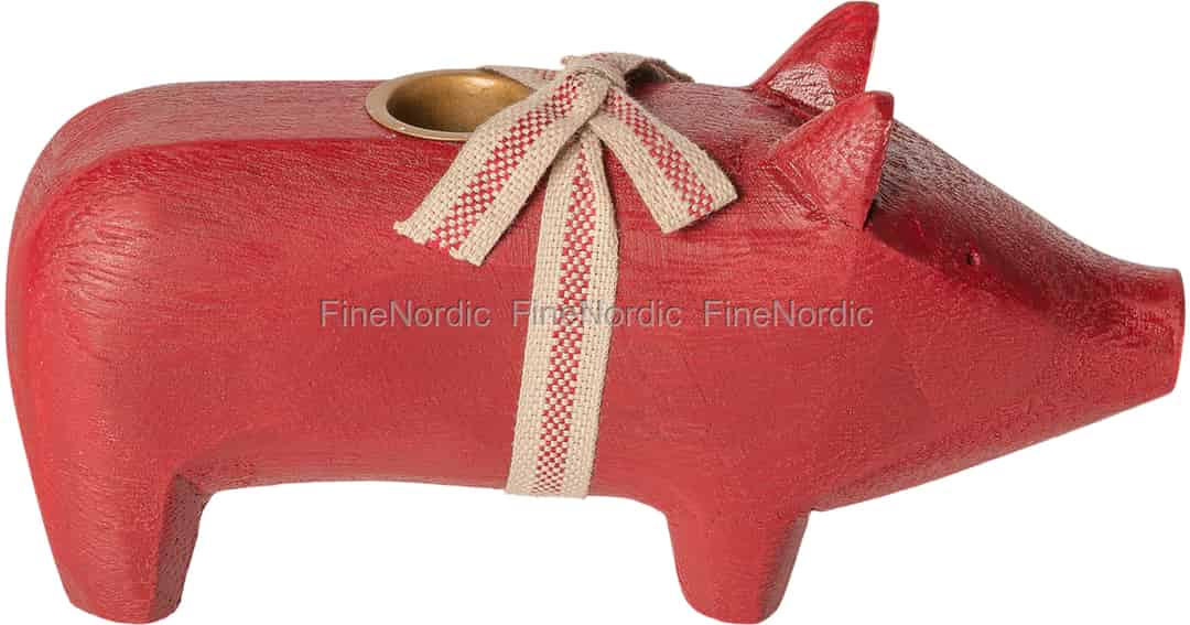 Schauen Sie sich doch nur mal diesen hübschen Holzkerzenhalter in weihnachtlich Rot an. Der Maileg Schweinekerzenhalter ist mit einem hübschen Band verziert und hat oben auf dem Rücken eine Öffnung, in die eine Kerze reingesteckt werden kann. Stellen Sie den Kerzenhalter auf die Fensterbank oder auf den Tisch und er wird zum Blickfang des Raumes. Genießen Sie das sanfte Kerzenlicht dieses etwas außergewöhnlichen Kerzenhalters. Die Maileg Schweinkerzenhalter sind in verschiedenen Größen und Farben in unserem Webshop erhältlich, sodass Sie sie beliebig kombinieren können. Ein Maileg Schweinchen Kerzenhalter ist auch eine schöne Weihnachts- oder Geburtstagsgeschenkidee. In diesen Kerzenhalter passt eine Kerze mit einem Durchmesser von 2,2 cm.