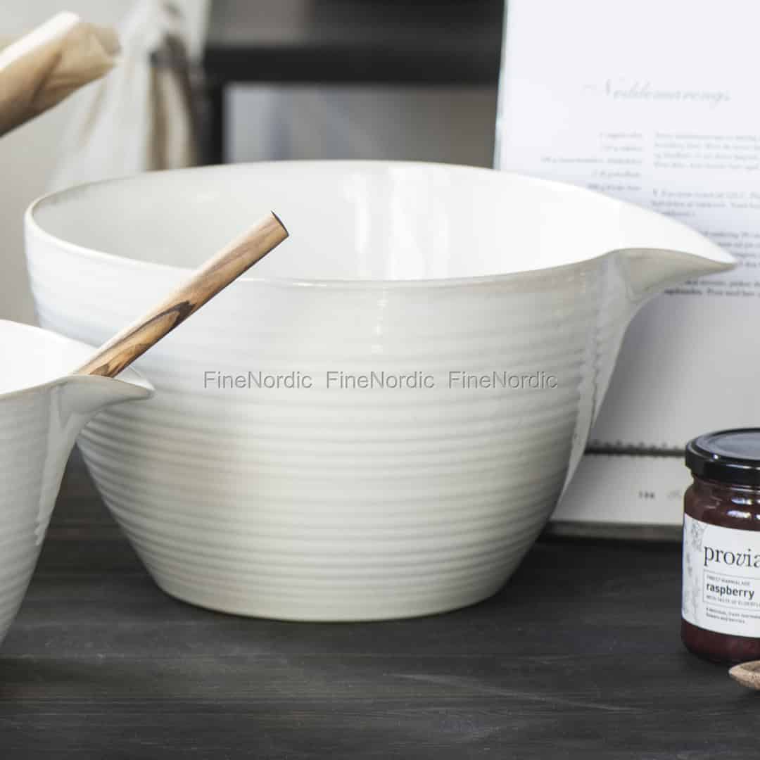 Haben Sie öfters mal Lust auf was Süßes, wie zum Beispiel leckere Schokoladen Brownies? In dieser fantastischen weißen Teigschale von Ib Laursen können Sie den Teig in kürzester Zeit zusammen rühren. Die weiße Keramikschale hat auf der Außenseite ein geriffeltes Design und die Innenseite ist weiß und glatt. Dank ihrer Tülle wird das Eingießen des flüssigen Teigs in die Backform zum Kinderspiel. Diese spülmaschinenfeste Rührschüssel von Ib Laursen ist auch in einer kleineren Version erhältlich.