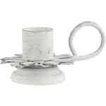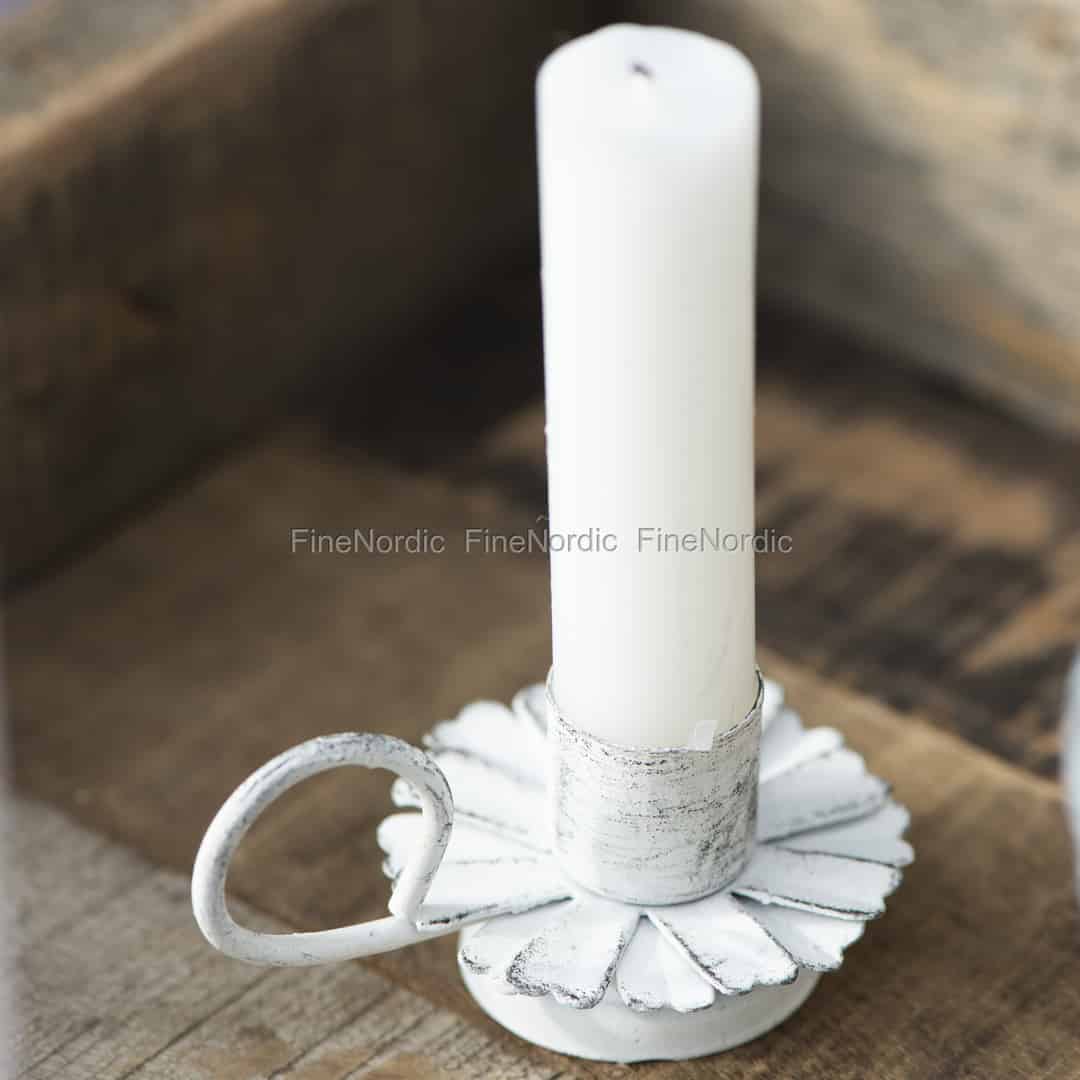 Ib Laursens Kerzenhalter Blume ist ein hübsches Wohnaccessoire mit einem etwas rustikalen Look. Die Form des weißen Kerzenhalters im Vintage Stil erinnert an eine Blume. Der Metallkerzenhalter ist leicht an seinem schlingenartigen Griff zu halten und zu tragen. Eine kurze Stabkerze mit einem Durchmesser von 2,2 cm ist passend für diesen Metallkerzenständer. Kerzenlicht ist nicht nur eine hübsche Lichtquelle, sie verleiht dem Raum auch eine entspannte Atmosphäre. Der Shabby Chic Look des Metallkerzenständers ist gewollt und trägt zum Charme des Kerzenhalters von Ib Laursen bei.