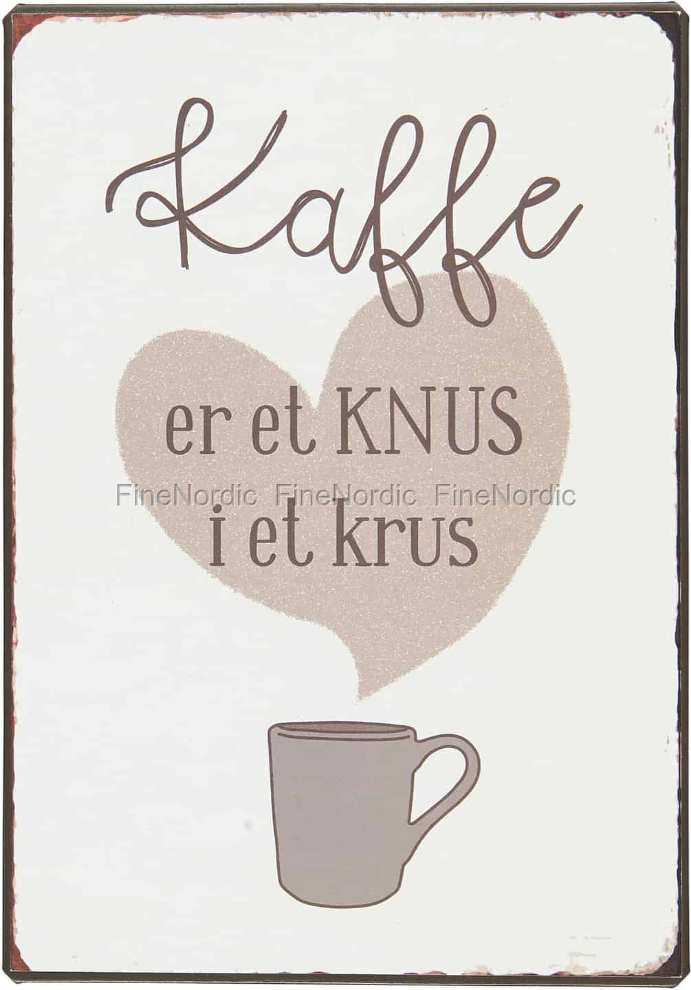 Hier online kaufen, Metallschild Kaffe er et knus i et krus, von Ib Laursen.