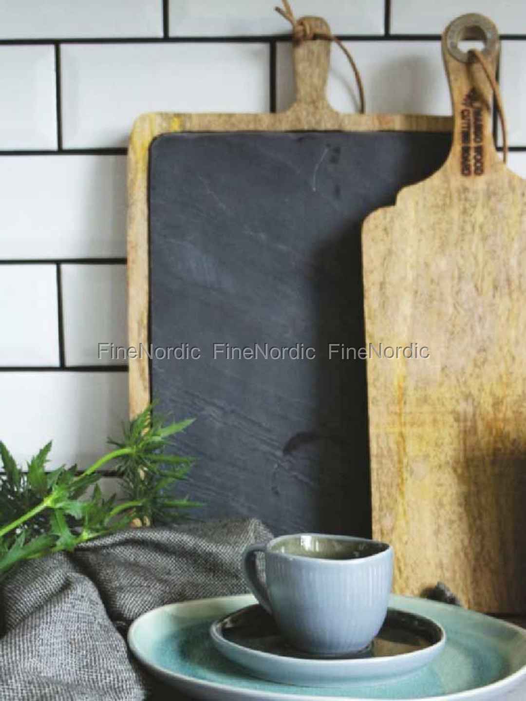 A.U Maison Schiefer Schneidebrett mit Mangoholz - Schwarz L 40,5 cm