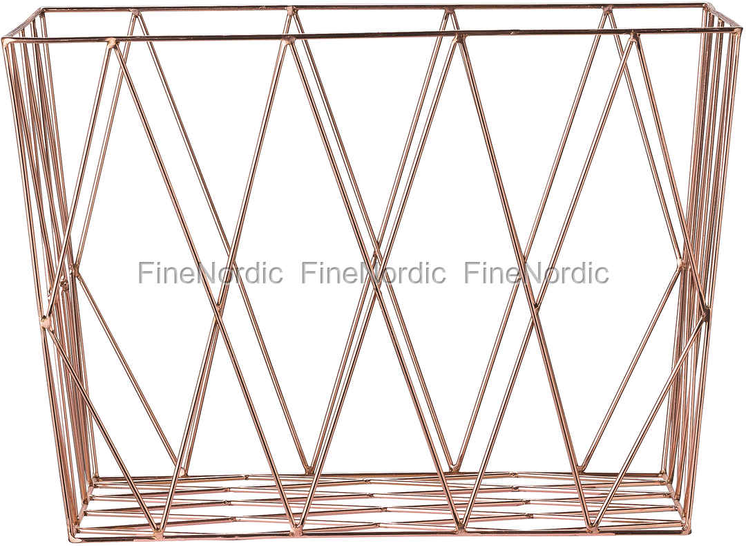 Dieser Aufbewahrungskorb aus Metall von Bloomingville kann in jedem Zimmer des Hauses verwendet werden. Darin können Sie Ihre Wolle und Stricknadeln neben dem Sofa in Wohnzimmer aufbewahren, Ihre Lieblingszeitschriften neben der Liege auf der Terrasse deponieren und einige zusätzliche Handtücher neben dem Waschbecken in Badezimmer für Ihre Gäste bereithalten. Dieser stilvolle Korb sieht gut in einem modernen Haus aus und bietet einen schönen Kontrast in einem Vintage-Stil Haushalt. Sein geometrisches Design und die glänzende Kupferoptik machen ihn zum Blickfang, egal wo er steht. Der Aufbewahrungskorb aus Metall von Bloomingville ist eine schöne Dekoration für das Haus und dazu noch eine sehr nützliche.