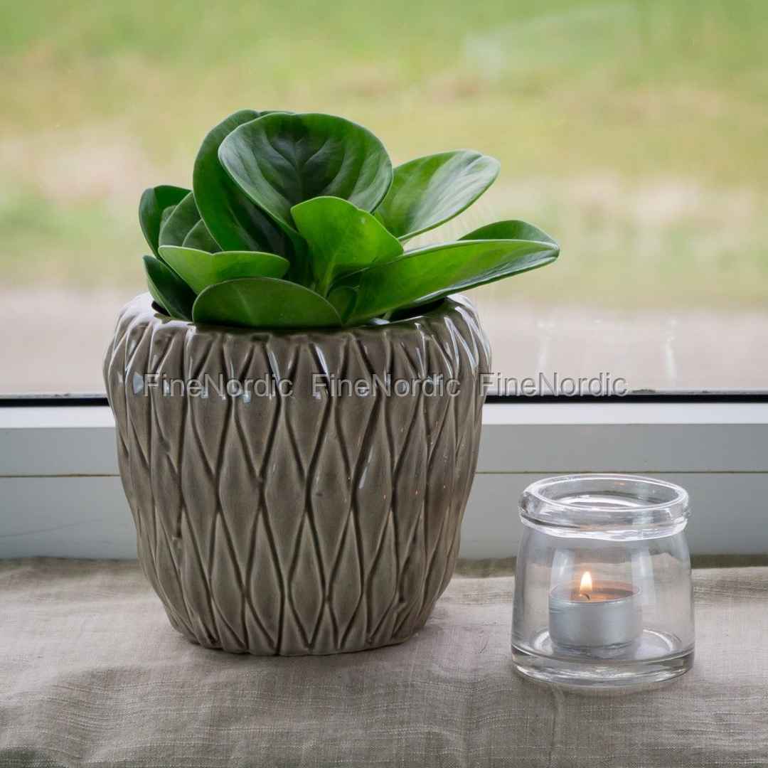 Blumenübertopf - Diamant Struktur - Latte - H 13,5 cm, von Bloomingville.