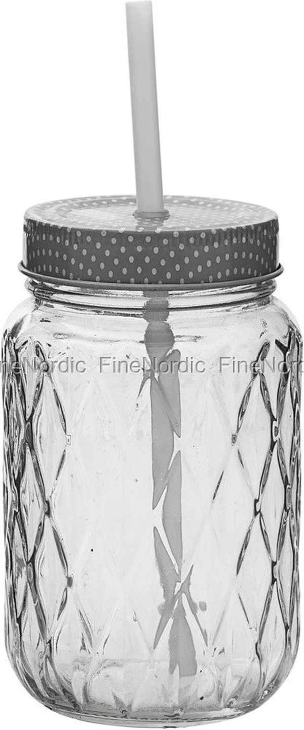 Flasche mit Deckel & Strohhalm Clear/Grau/Weiß 500 ml, von Bloomingville.