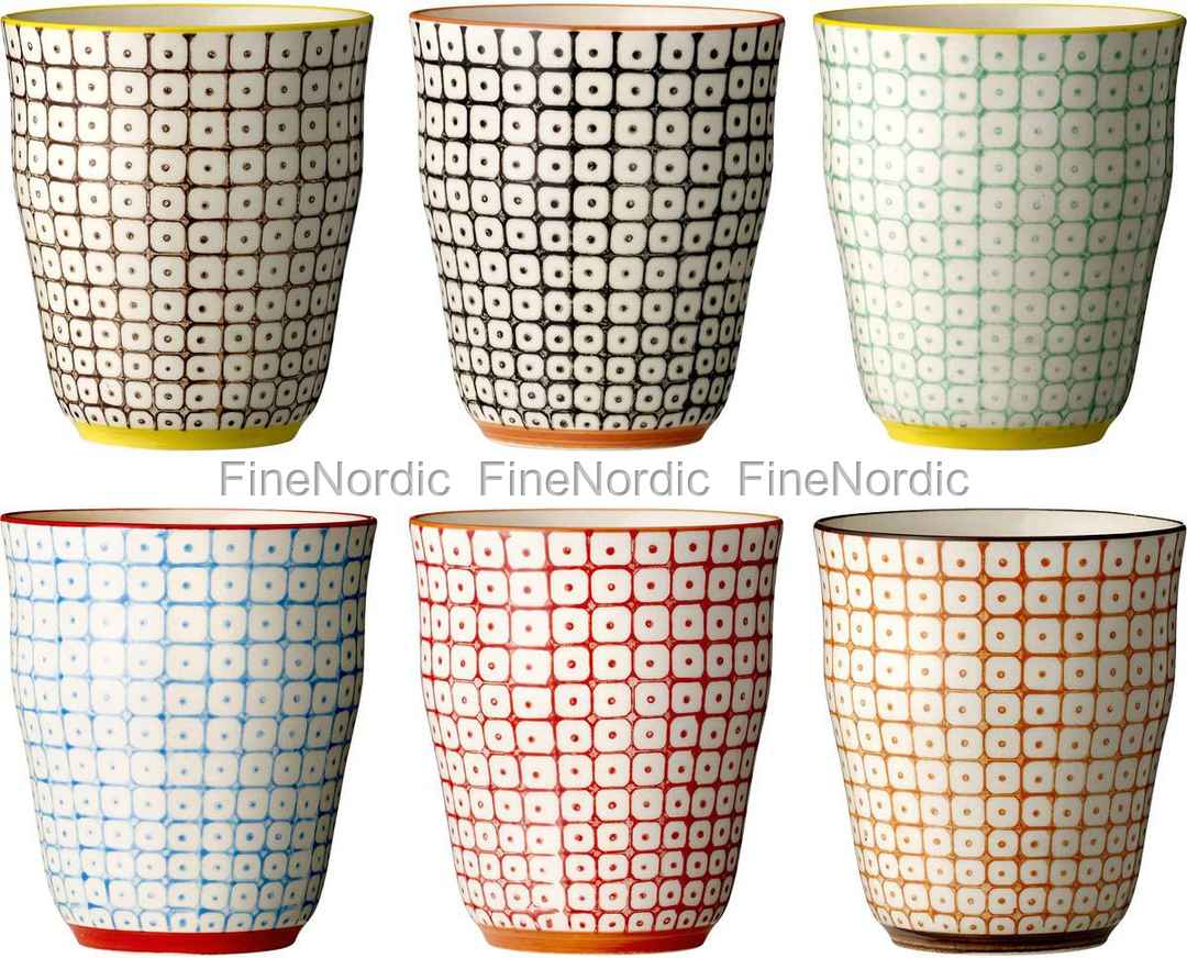 Schicke Becher mit grafischen Mustern aus der beliebten Geschirrserie von Bloomingville. Größe jeweils 8 x 10 cm. Sie erhalten das sechsteilige Set.
