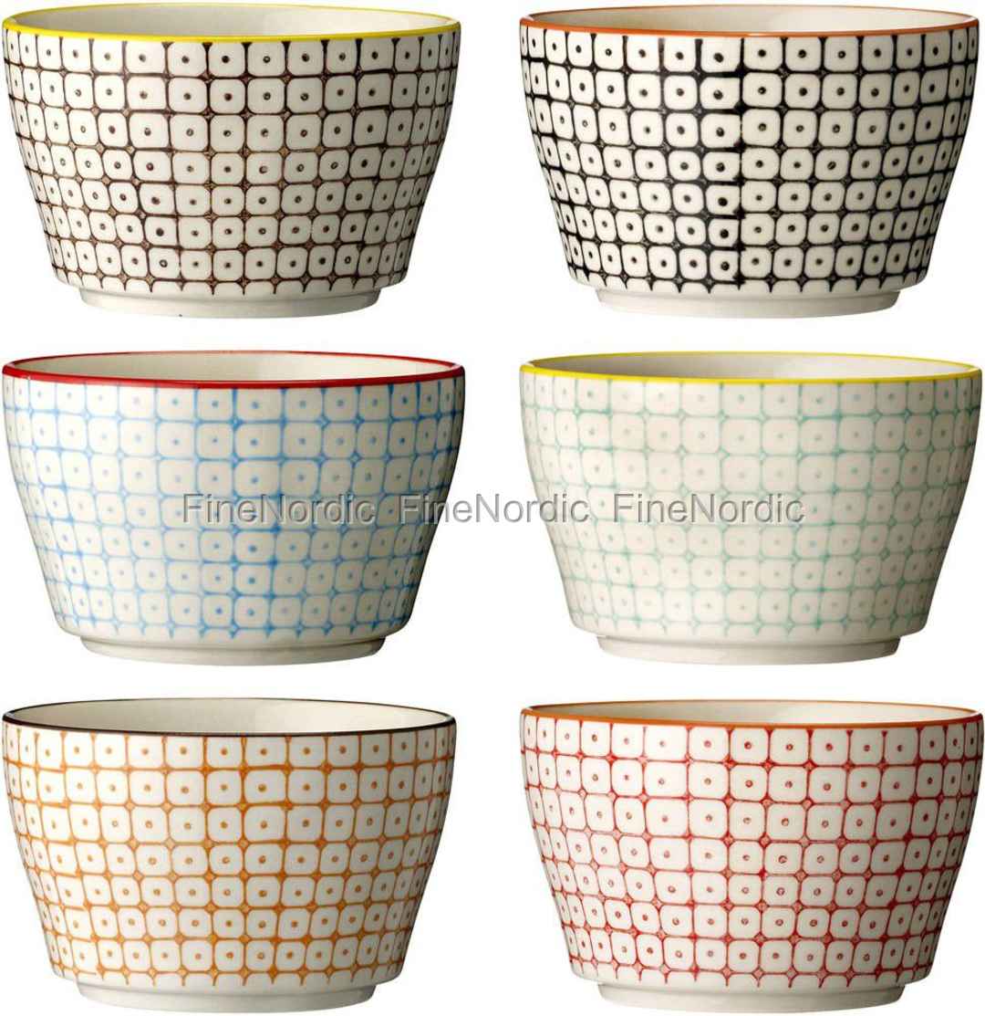 Schicke Schüsseln mit grafischen Mustern aus der beliebten Geschirrserie von Bloomingville. Größe jeweils 6 x 11 cm. Der Preis gilt für das sechsteilige Set.
