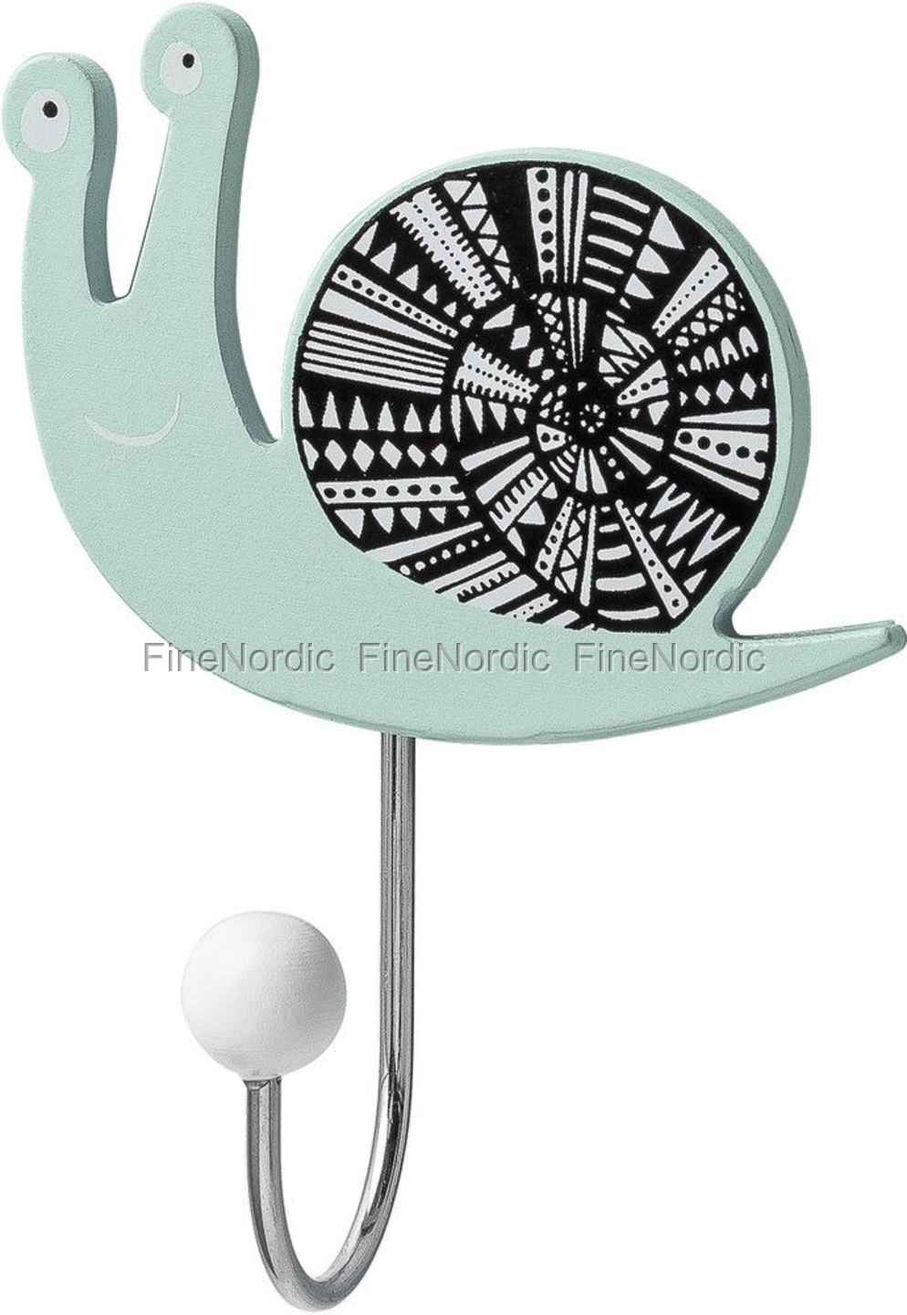 Haken für die Wand - Schnecke - Mint / Schwarz / Weiß, von Bloomingville.