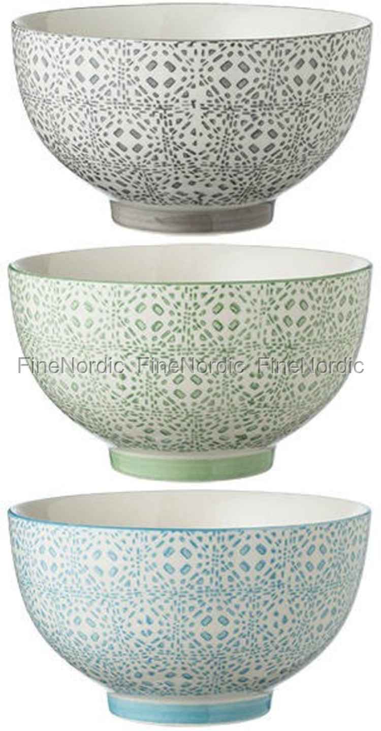 Isabella Schalen mit Muster - Grün - Grau - Blau - 3er Set, von Bloomingville.