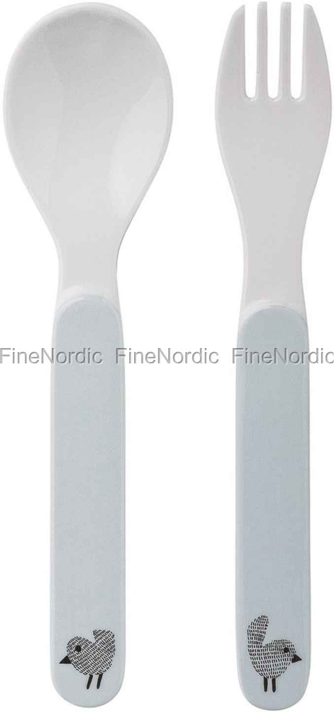 Melamin Gabel und Löffel Noah - Blau/Weiß - 2-teiliges Set, von Bloomingville.