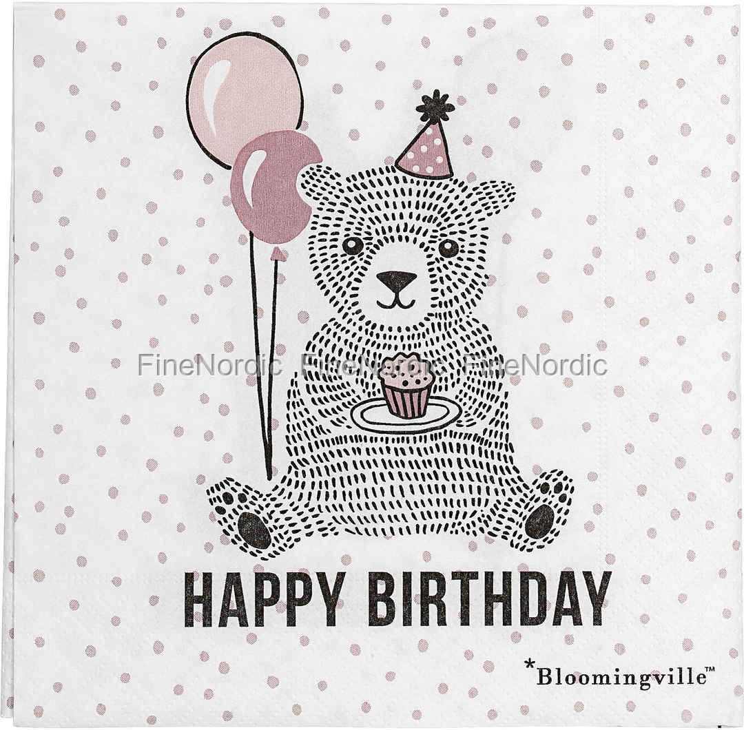 Papierservietten Geburtstag Weiß m Rosa 20 Stck, von Bloomingville.