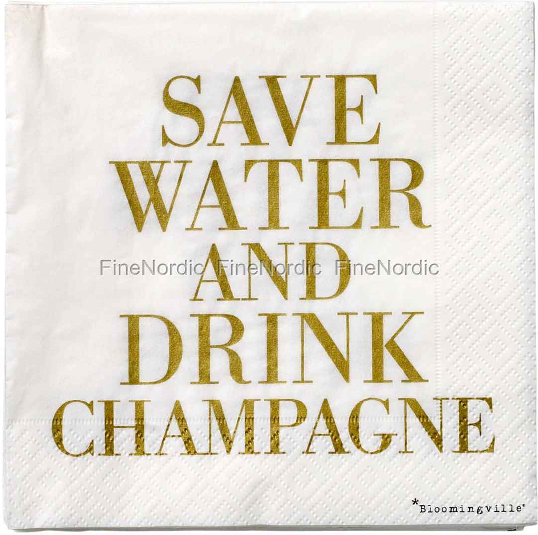 Papierservietten - Save water and drink Champagne - Gold/Weiß 20 Stck, von Bloomingville.