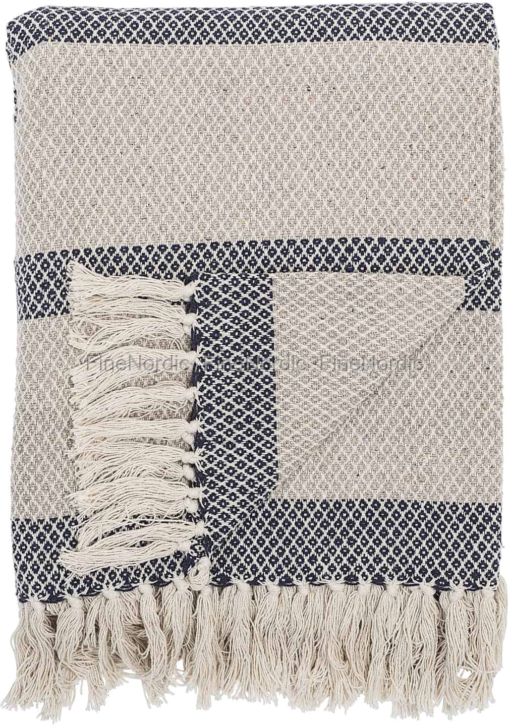 Bloomingville Plaid Grau Harlekin mit Blau Streifen 160 x 130 cm