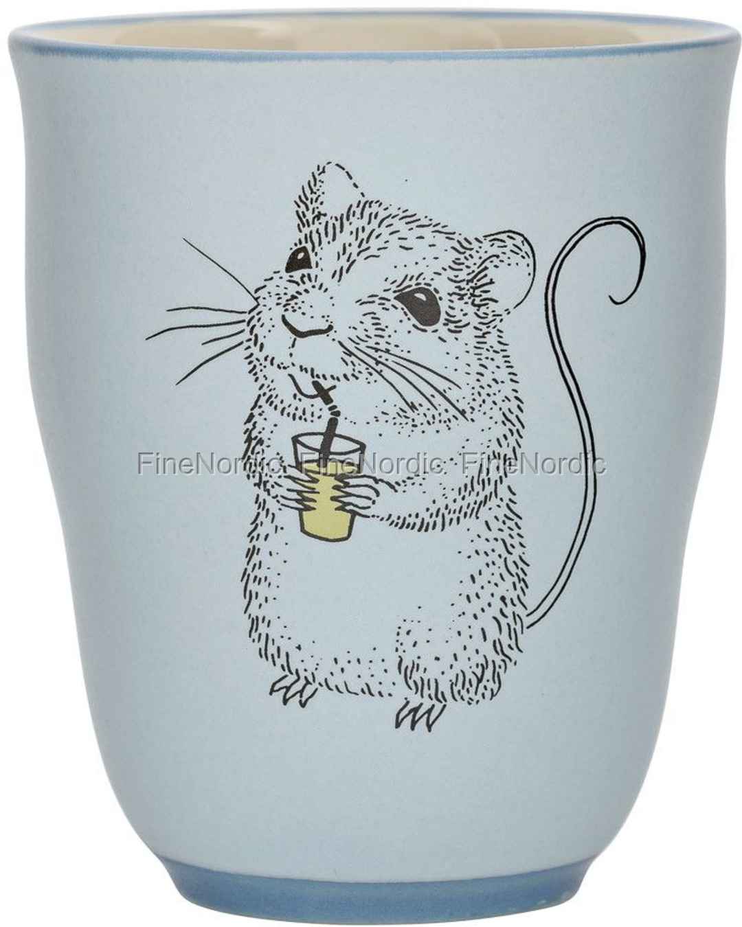Die Eddie Tasse von Bloomingville ist ein weiteres Produkt aus Bloomingvilles charmanter Kinderserie Mini. Auf der Tasse ist eine entzückende Zeichnung einer Maus dargestellt. Mit hoch gehaltenem Schwanz ist die Maus damit beschäftigt, mit einem Strohhalm etwas gelbe Flüssigkeit aus einem Glas zu trinken. Der Hintergrund ist hellblau, was einen schönen Kontrast zur hellen Innenseite der Tasse darstellt. Die Tasse hat die perfekte Größe und Form, um von kleinen Kinderhänden gehalten zu werden. Der Becher ist in unserem Webshop auch in Mint erhältlich.