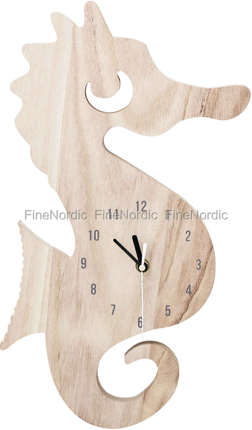 Wanduhr Seepferdchen Natur Paulownia, von Bloomingville.
