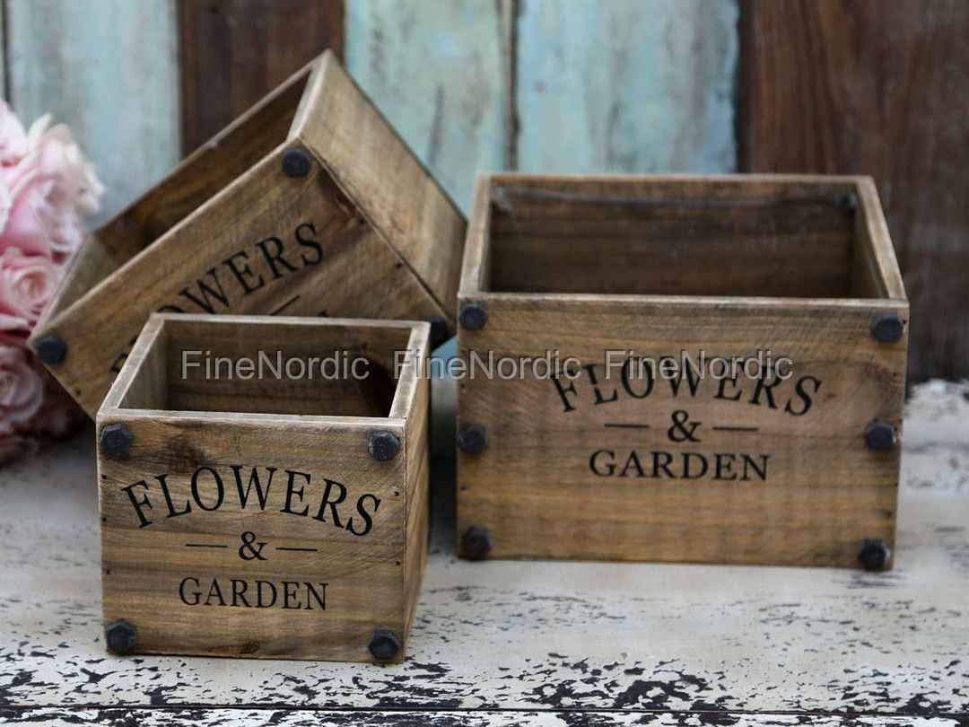 Antike Holzkisten Blumen & Garten - 3-er Set, fra Chic Antique.