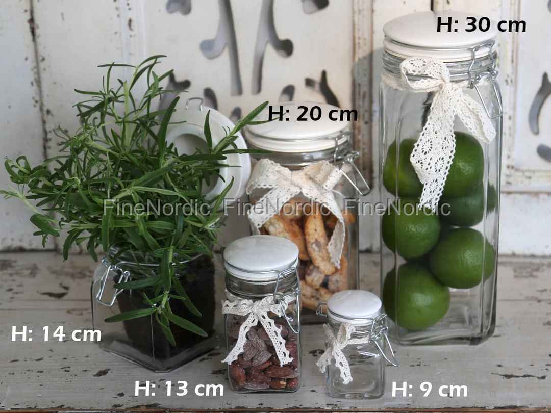 Aufbewahrungsglas mit Porzellandeckel und Spitzenband - H 14 cm, von Chic Antique.