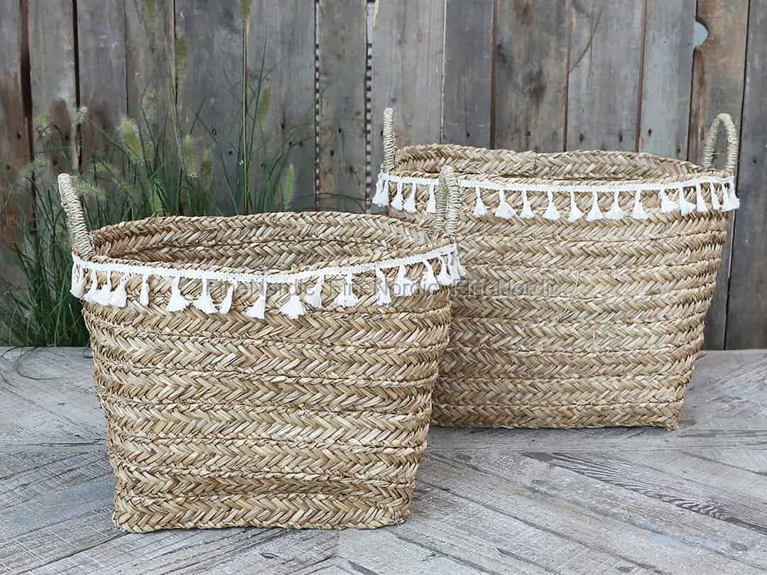 Der große Seegraskorb von Chic Antique fällt einem durch sein wunderschönes natürliches Aussehen und die verspielten Baumwollfransen sofort auf. Die Fransen sind am oberen Rand des Korbes angebracht und bieten einen sehr schönen Kontrast zum strohfarbenen Korb und lassen ihn dadurch wirklich hervorstechen. Der Korb hat zwei Griffe, was bedeutet, dass er auch sehr mobil ist. Nehmen Sie ihn zum Beispiel zur Hand, wenn Sie die schmutzigen Kleidungsstücke Ihres Kindes einsammeln wollen und tragen Sie sie darin direkt bis zum Waschraum. Verwenden Sie ihn als Aufbewahrungskorb im Kinderzimmer für Spielzeug oder Bücher oder um zusätzliche Badetücher im Badezimmer griffbereit zu haben. Körbe helfen uns nicht nur, organisiert zu bleiben und das Zuhause übersichtlich zu gestalten, sie sind auch eine hübsche Deko für jeden Raum. Dieser Korb aus Seegras ist auch in einer kleineren Größe erhältlich.