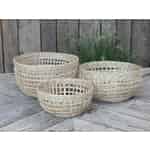 Dieses wunderschöne 3-teilige Chic Antique Körbe Set besteht aus Seegras und die Körbe weisen alle ein sehr hübsches Flechtmuster auf. Sie sind alle drei verschieden groß, sodass Sie sie für verschiedene Zwecke verwenden können. Stellen Sie sie zusammen als Dekoration auf oder verwenden Sie sie als Aufbewahrungskörbe in separaten Bereichen des Hauses. In dem einen können Sie ein paar Spielzeuge Ihres Kindes sammeln, ein anderen für Handtücher im Badezimmer verwenden, und den dritten, um Ihre Wolle und das neueste Strickprojekt an einem Ort liegen zu haben. Das strohfarbene Korbset ist sowohl ein hübsches als auch ein sehr nützliches Wohnaccessoire.
