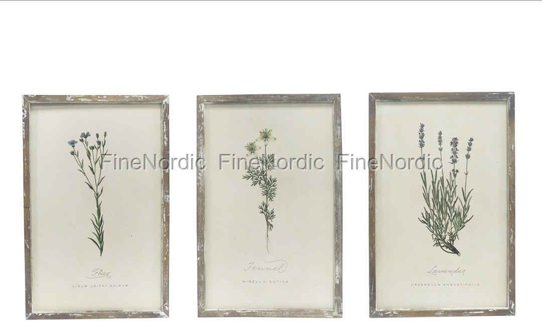 Das 3er Set Chic Antique Bilder mit Blumendruck ist eine schöne Dekoration für das Esszimmer, den Wintergarten oder das Wochenendhäuschen. Schlicht und doch sehr schön sind die eingerahmten Blumendrucke anzusehen. Auf den Bildern werden je Fenchel, Flachs und Lavendel abgebildet und sie liegen alle geschützt hinter einem Glas. Der jeweilige Holzrahmen ist in Vintage Look gehalten und ist mit einem Nagel leicht an der Wand anzuhängen. Gut gemacht, Chic Antique!