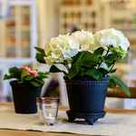 Blumentopf mit Perlen-Rand - inkl. Untersetzer - Frostsicher - Antik Kohle - H 21 cm, von Chic Antique.