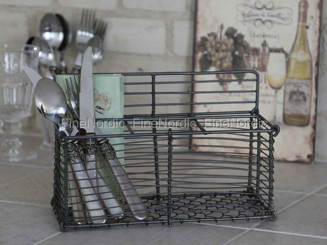 Drahtkorb mit 3 Fächern in Antik Grau, fra Chic Antique.