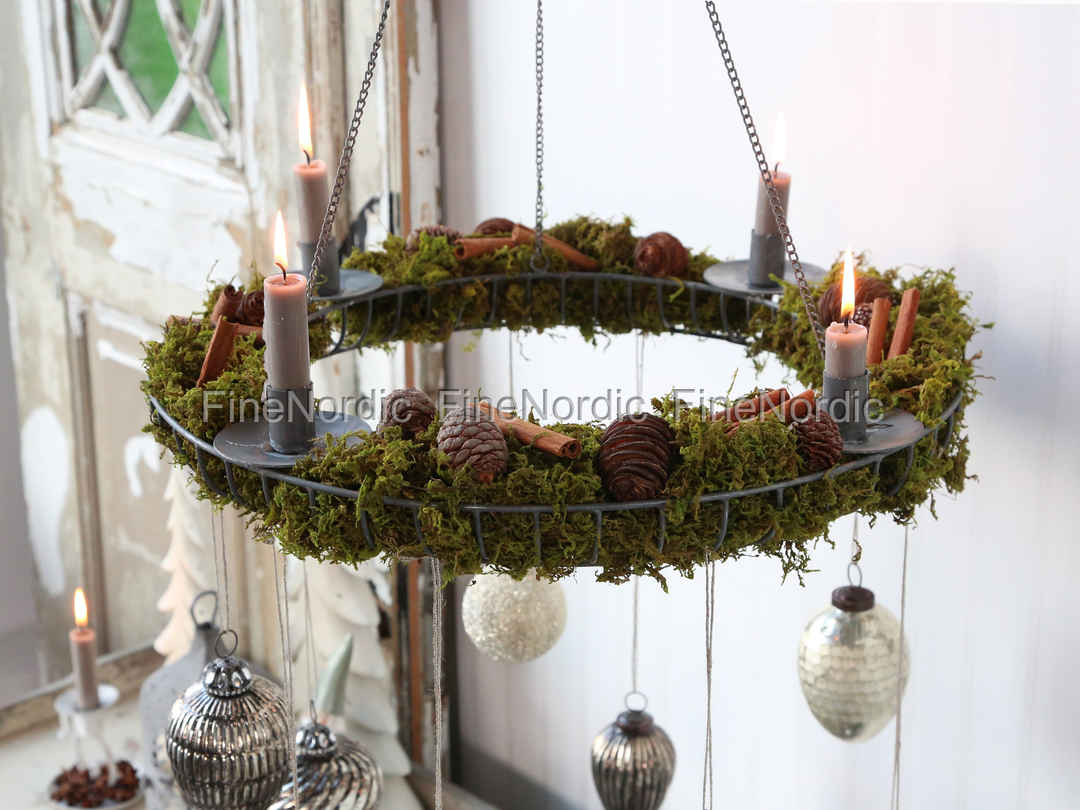 Hängen Sie Ihren Adventskranz gerne an der Decke auf? Dann könnte dieser Chic Antique Fil de Fer Kranz für vier Kerzen der Richtige für Sie sein. In die vier Kerzenhalter passen Kerzen mit einem Durchmesser von 2 cm. Füllen Sie den Antik Zink Kranz mit Tannenzweigen oder Moos und dekorieren Sie ihn mit Ihrem schönsten Weihnachtsschmuck und Ihren Lieblingsornamenten. Fügen Sie einfach vier Kerzen hinzu und hängen Sie ihn an seiner Kette auf. Voilà, und schon sind Sie bereit für die Adventszeit.