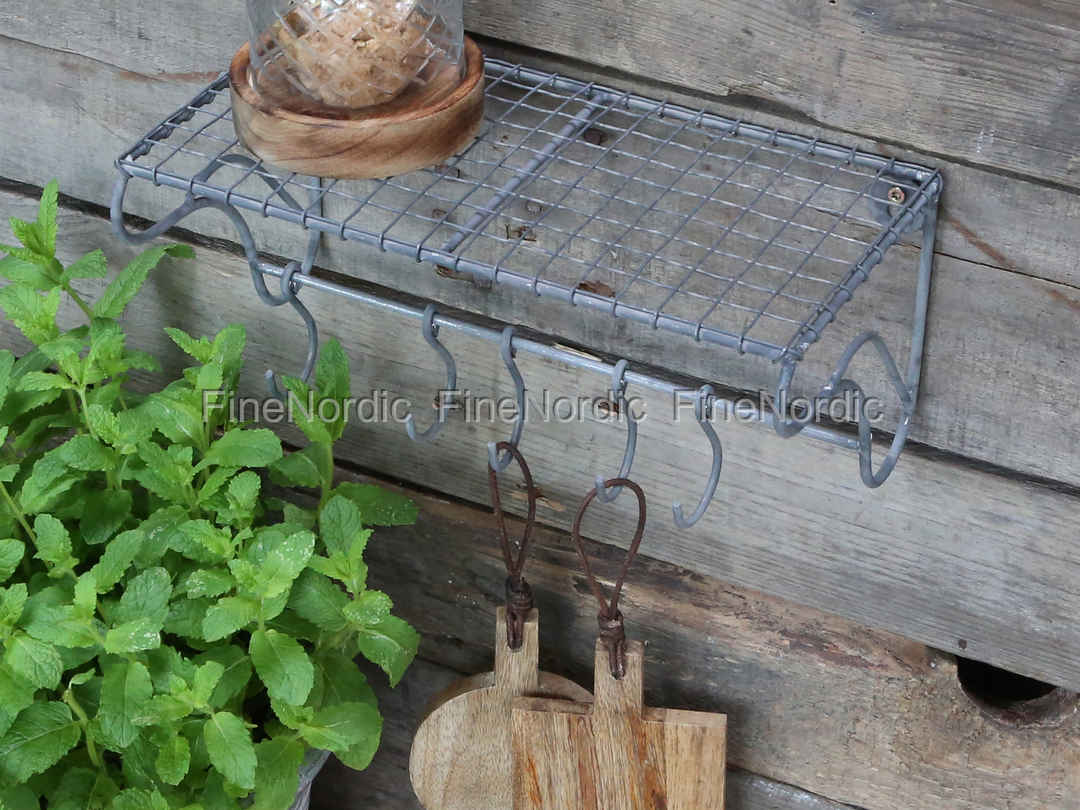 Fil de fer Regalbrett mit 5 Haken Antique Zink von Chic Antique.