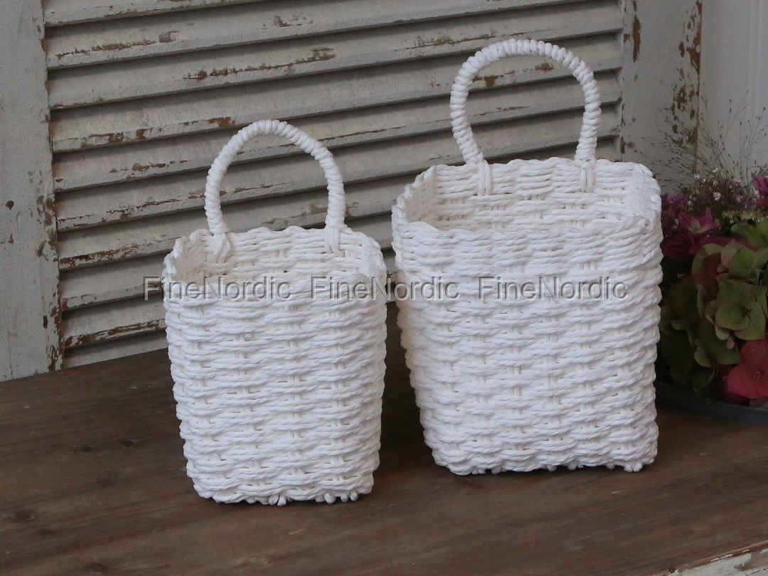 Flechtkörbe mit Henkel Weiß 2er Set von Chic Antique.