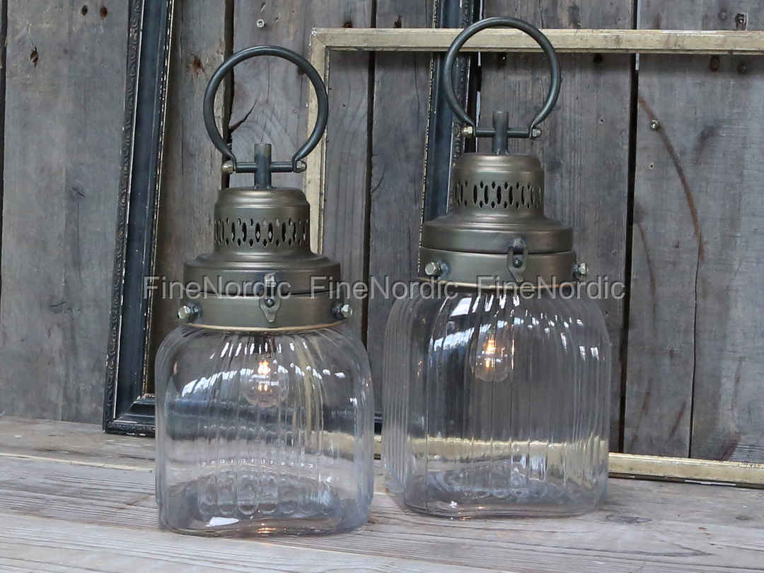 Chic Antique Franz. Stalllaterne eins. Glühbirne Antique Messing H 31 cm
