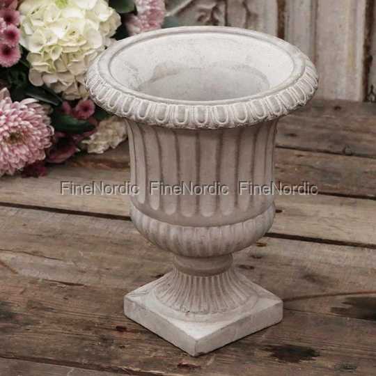 Chic Antique Französischer Blumenübertopf auf Fuß mit Rillen - Französisches Grau H 24,5 cm Bewertungen