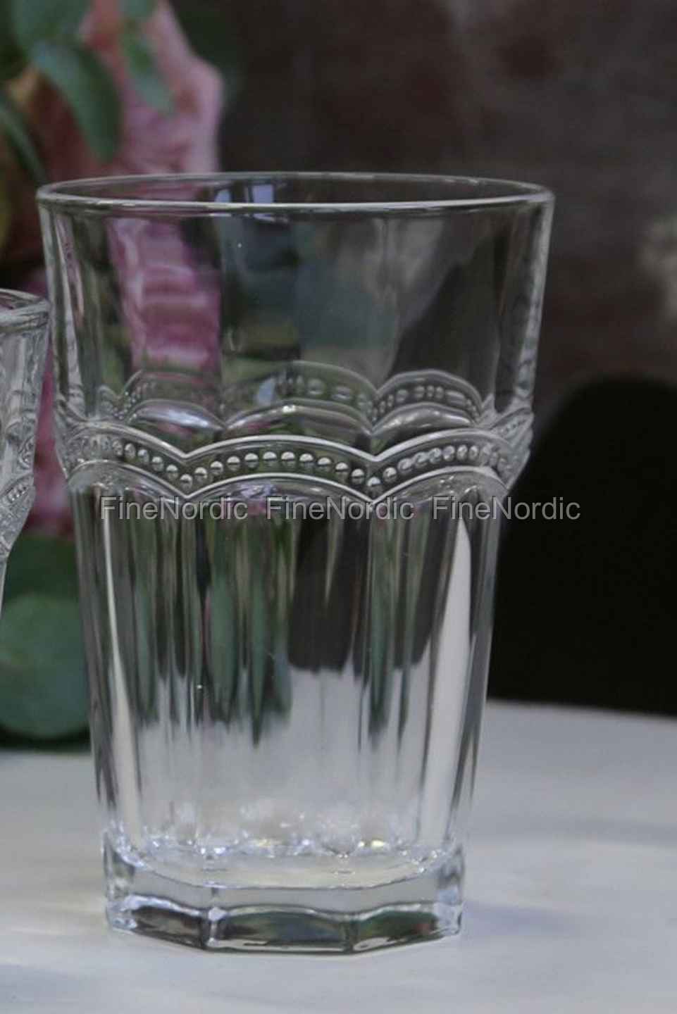 Das attraktive Glas Antoinette mit Perlenkante von Chic Antique darf in Alltag wie auch an Feiertagen auf den Tisch. Zum Trinken von Wasser, Milch, Saft und Co. ist es geeignet, aber auch ein warmer Kakao schmeckt aus dem Trinkglas. Eine hübsche Perlenkante schmückt das Glas, und diese findet man auch auf anderen Antoinette Gläsern wieder. Wenn Ihnen die Form und das Aussehen dieses Glases gefällt, dann schauen Sie sich bitte auch die anderen Variationen an Antoinette Gläsern in unserem Webshop an.