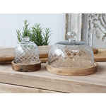 Chic Antique Glasglocke mit Boden aus Mangoholz H 11 cm