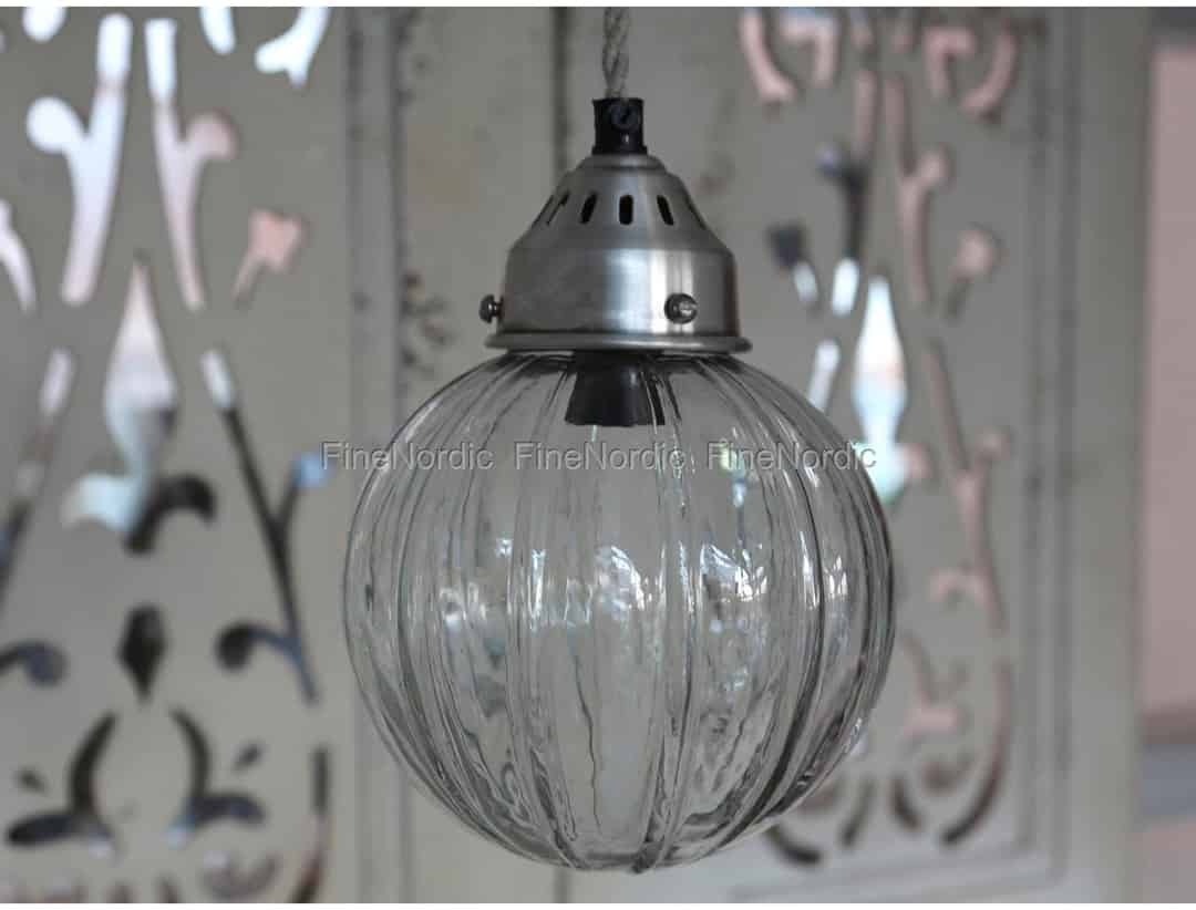 Hier online kaufen, Glaslampe Globular mit Rillen Handgemacht, von Chic Antique.
