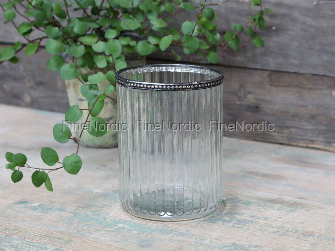 Glasübertopf mit Perlenkanten und Rillen von Chic Antique.