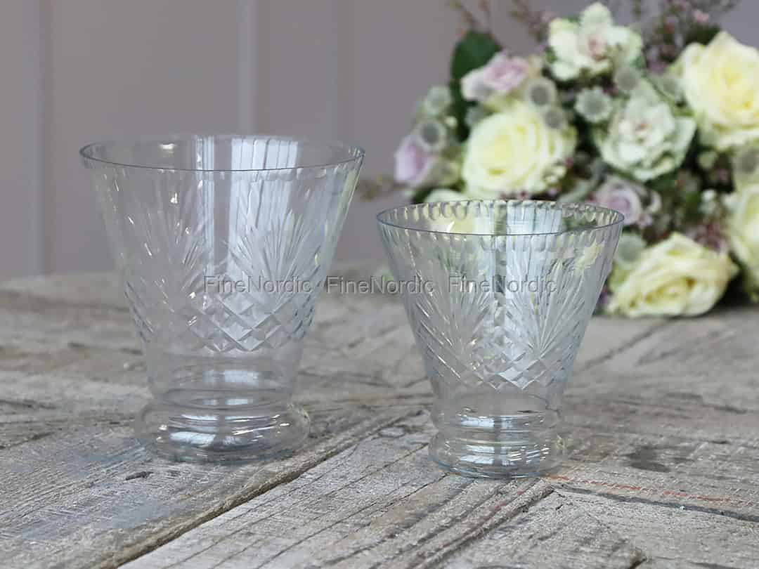 Diese große Chic Antique Glasvase mit Schliff hat eine Trichterform und wir mögen das hübsche Design in ihrem Glas sehr. Glasvasen können viel mehr, als nur als Blumenvasen verwendet zu werden. Sie können diese klare Vase mit etwas Erde füllen und ein paar Sukkulenten darin einpflanzen, sie im Herbst und Winter mit kleinen Tannenzäpfchen dekorieren oder sie im Sommer mit Sand, einer kleinen LED Stumpenkerze und einer hübschen Muschel füllen. Dies sind nur ein paar wenige Ideen, wofür diese transparente Vase verwendet werden kann. Die Chic Antique Glasvase mit Schliff ist auch in Klein erhältlich. Bestellen Sie diese noch dazu und sie können die zwei gut aussehenden Vasen zusammen zur Schau stellen.