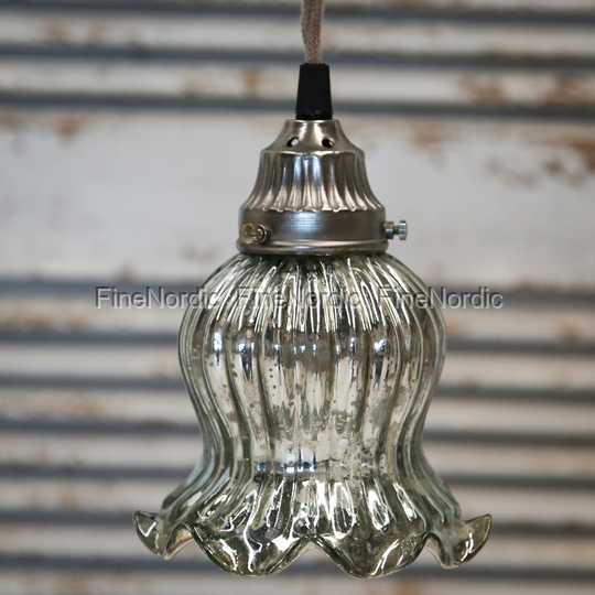 Hängelampe Tulpe - Antik Silber Ø 13 cm - inkl. Lampenbaldachin, von Chic Antique.