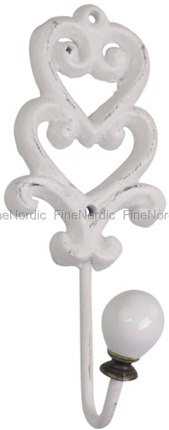 Hier online kaufen, Haken mit Porzellanknopf und Herz-Dekor Antique Weiß, von Chic Antique.