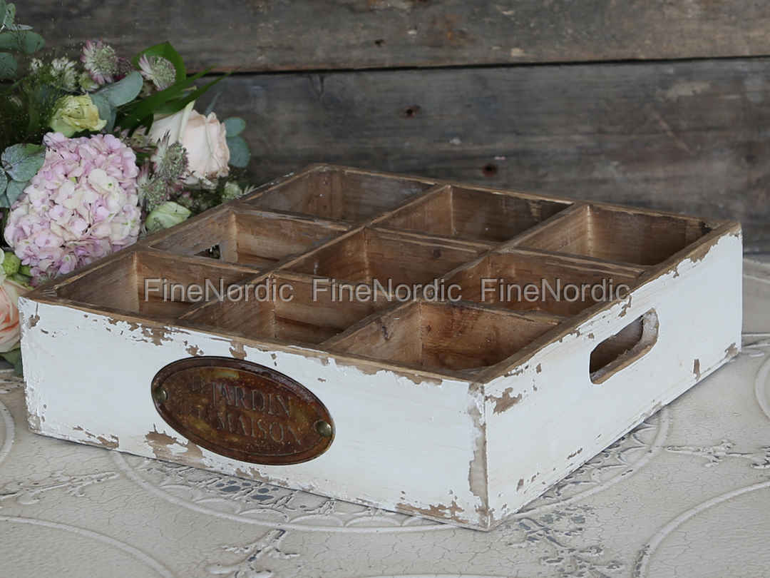 Holzkasten m. 9 Fächern Antik Weiß, von Chic Antique.