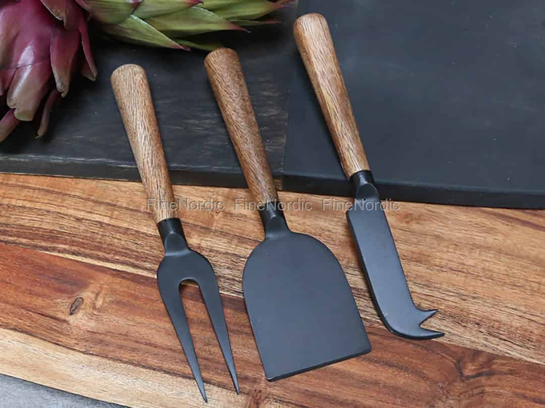 Hier online kaufen, Käsemesser mit Holzgriff 3er Set Schwarz, von Chic Antique.