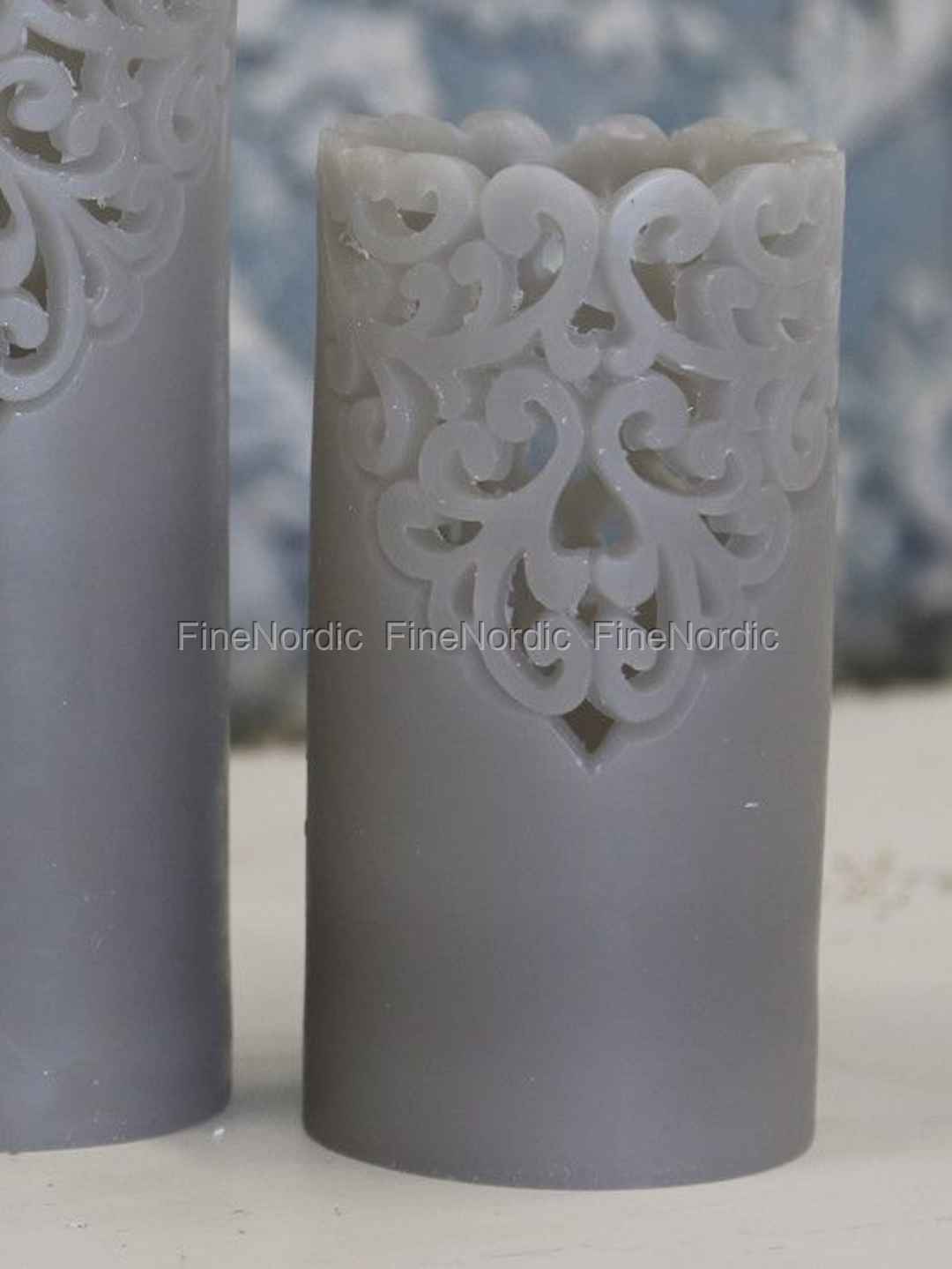 Kerze für Batterien "Lace" Grau - H 15 cm, von Chic Antique.