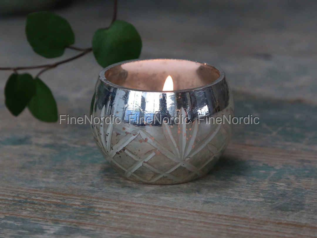 Chic Antique Kerzenhalter mit Karo Schliff Antique Silber