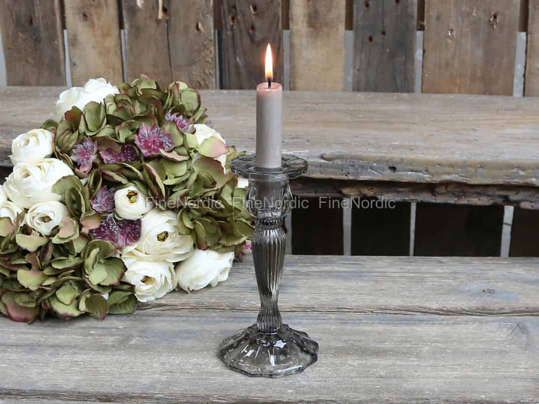 Hier online kaufen, Kerzenhalter mit Rillen Grau, von Chic Antique.
