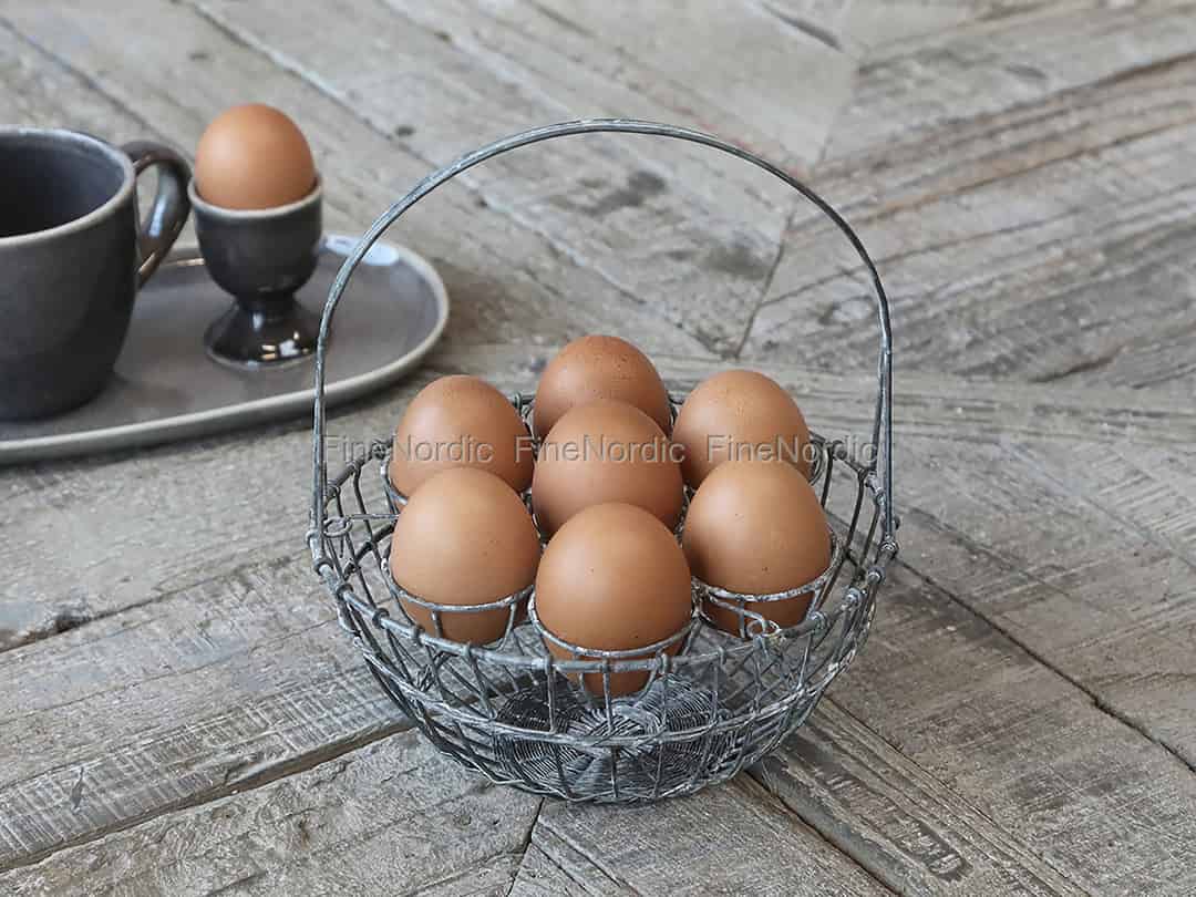 Tragen Sie Ihre gekochten Eier, in diesem gut aussehenden Eierkorb von Chic Antique, direkt vom Herd bis zum Tisch. Der Zink Korb bietet genügend Platz für sieben Eier und ist durch seinen großen Griff auch ganz leicht zu tragen. Sie können den Drahtkorb einfach auf den Tisch stellen und jeder kann dann selbst bedienen. Sie können ihn auch mit bemalten Ostereiern füllen und ihn als Herzstück auf dem Tisch verwenden. So kann dieser graue Korb sowohl als Dekoration als auch als hilfreiches Küchenzubehör verwendet werden.