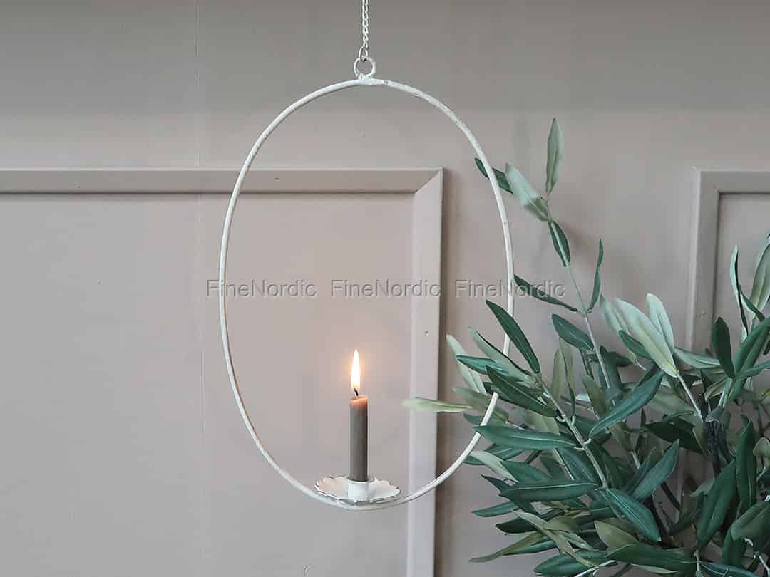 Mit dem Chic Antique Kranz für schmale Kerzen können Sie Ihre Kerze von der Decke oder vor dem Fenster aufhängen. Die schmale Kerze mit 1,3 cm Durchmesser passt in den Halter und wir mögen seine ovale Form und die antike weiße Farbe. Der Eisenkranz hängt an einer Kette, die zum einfachen Aufhängen in einem Haken endet. Hängen Sie den Kranz so wie er ist auf oder befestigen Sie ein paar getrocknete Blumen oder andere saisonale Dekorationen daran. Der Chic Antique Kranz mit Aufhänger ist auch in einer kurzen Stabkerzen Version erhältlich.