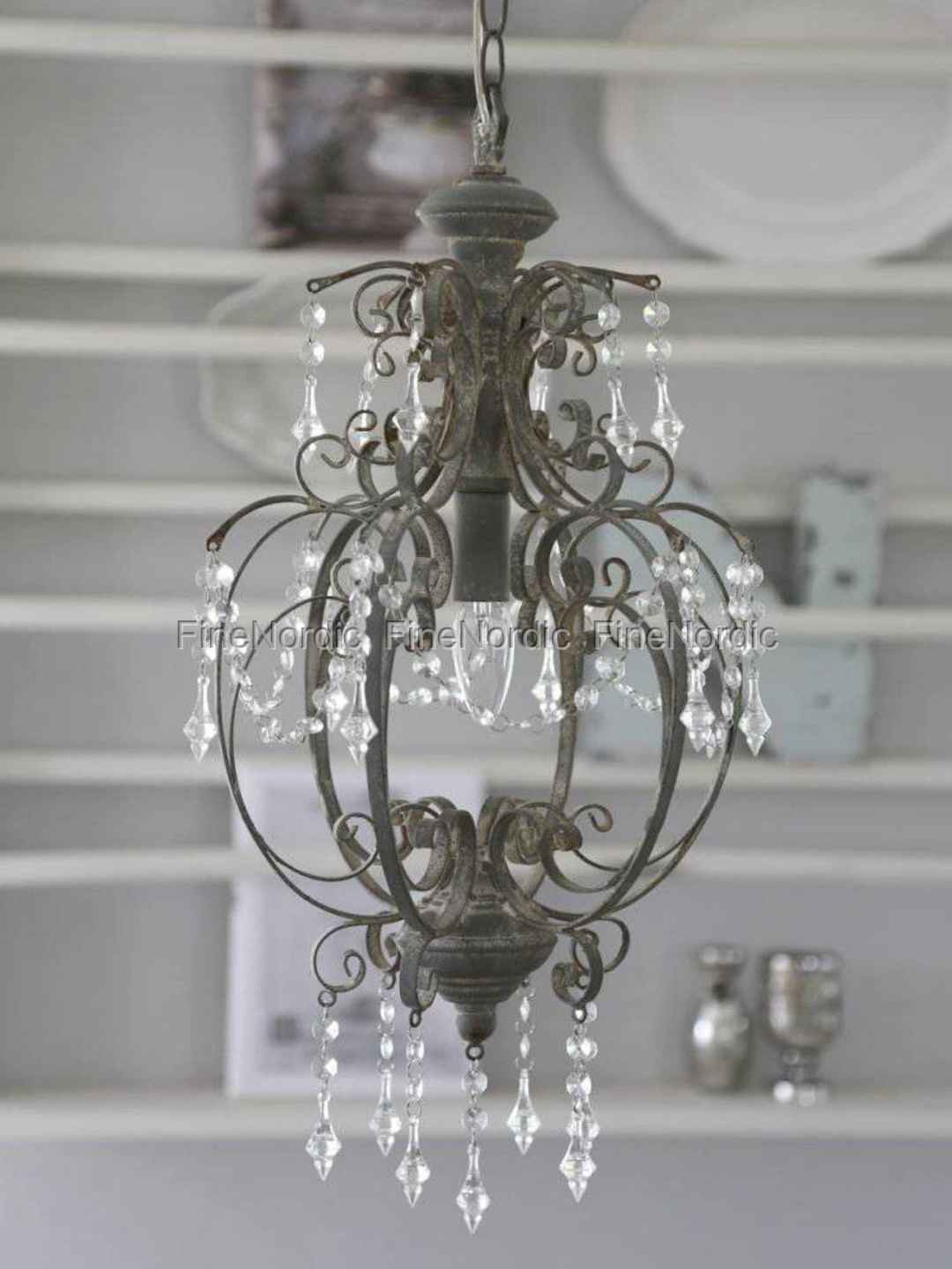 Chic Antique Kronleuchter mit Prismen - Antik Grau