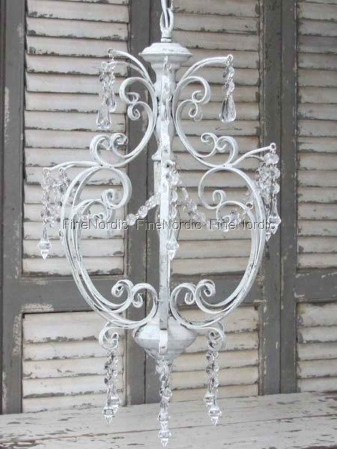 Herrlicher Kronleuchter mit Prismen von Chic Antique aus antik-weißem Eisen.