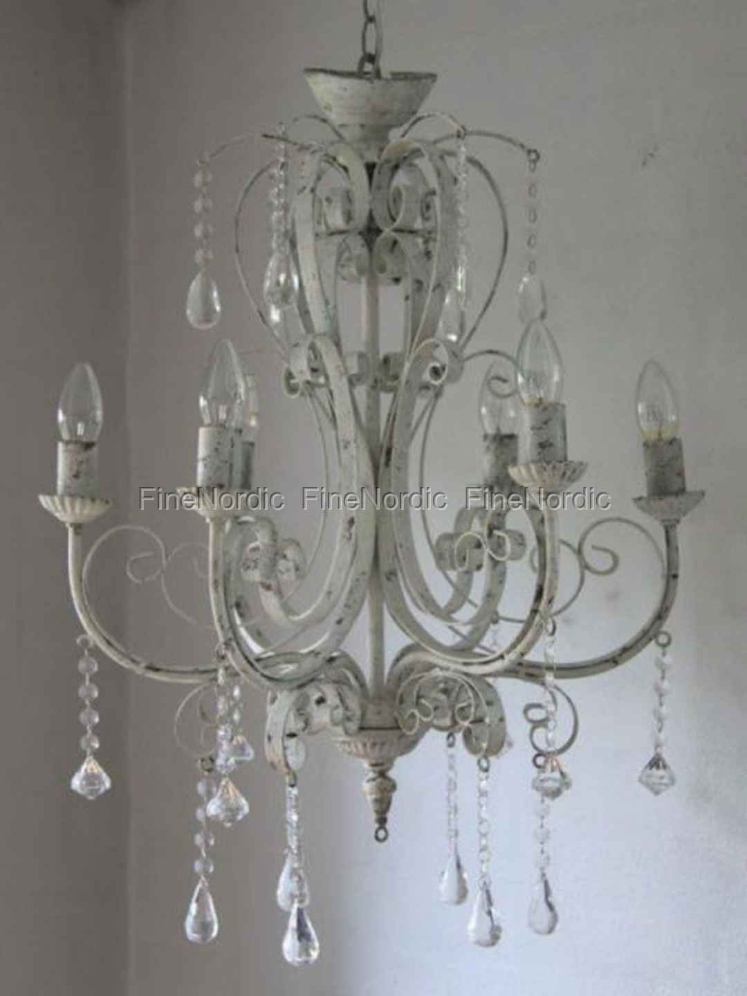 Chic Antique Kronleuchter mit sechs Armen und Prismen - Antik Weiß - Groß