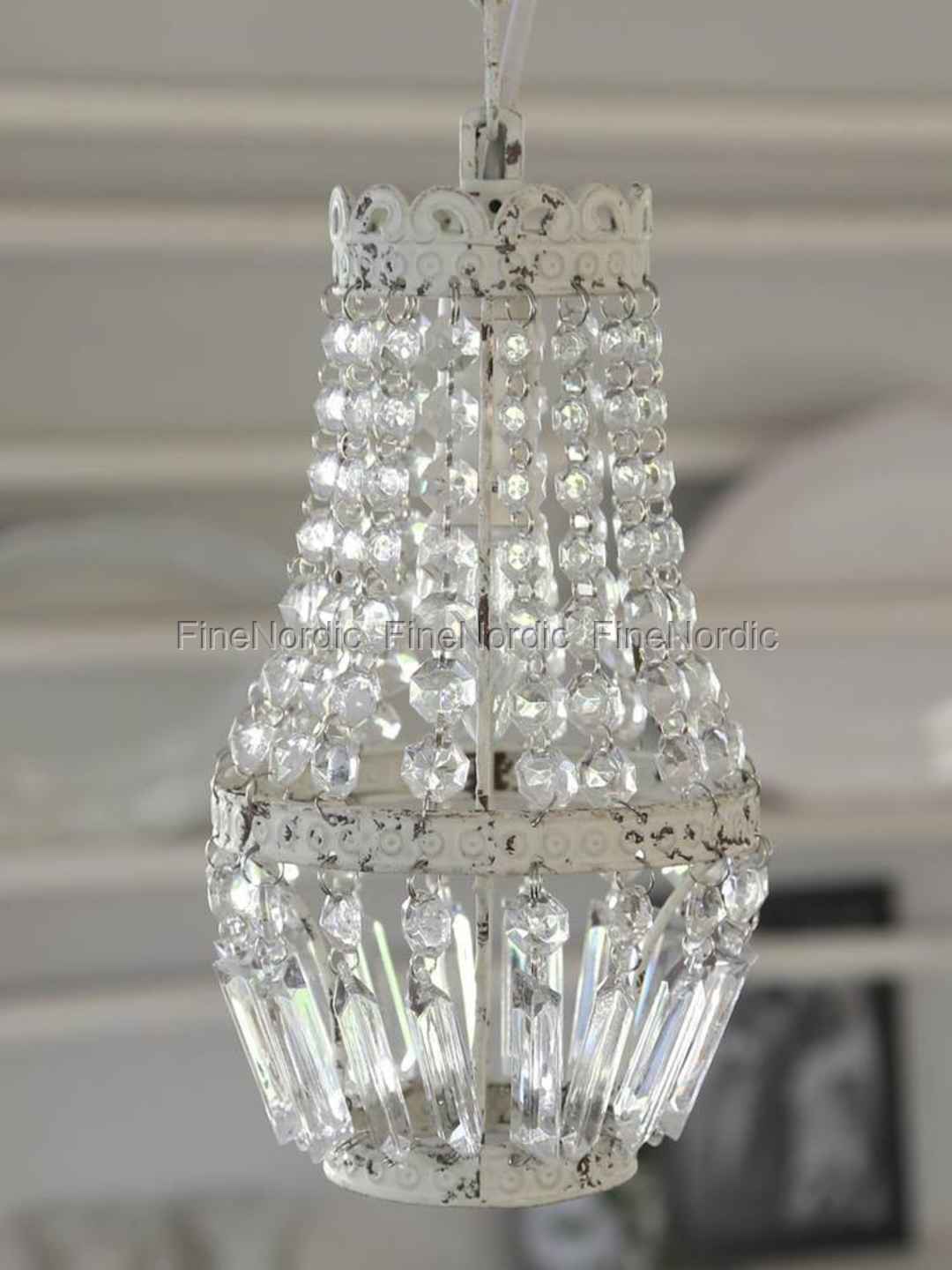 Chic Antique Kronleuchter mit Prismen - Antik Weiß - Klein