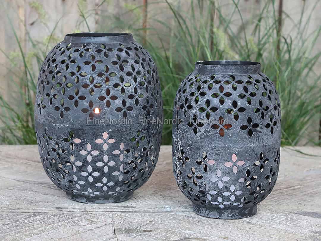 Schauen Sie sich doch mal diese äußerst ansprechende Chic Antique Laterne mit Muster etwas genauer an. Die Eisenlaterne hat eine Antik schwarze Farbe und ein sehr hübsches, gelochtes Blumenmuster. Das sich wiederholende Muster ist rund um die Laterne zu sehen und es wirft hübsche Schatten in den Raum, nachdem die Kerze angezündet wurde. Nutzen Sie die Laterne, um eine dunkle Stelle im Raum zu erhellen oder einfach nur als zusätzliches Ambiente. Die Chic Antique Laterne in Antik Schwarz ist auch in einer kleineren Größe erhältlich, sodass Sie sie zusammen oder aber auch separat an zweierlei Stellen Ihres Hauses hinstellen können.